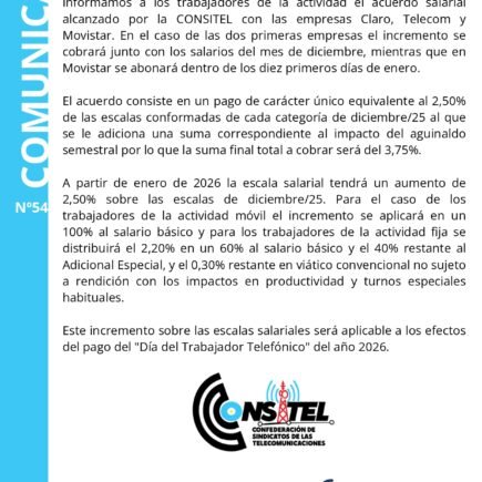 Comunicado de Consitel sobre el acuerdo salarial para el mes de Diciembre.