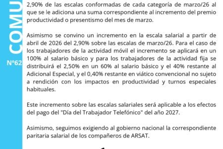 Comunicado de Consitel sobre el acuerdo salarial para el mes de Marzo de 2026.