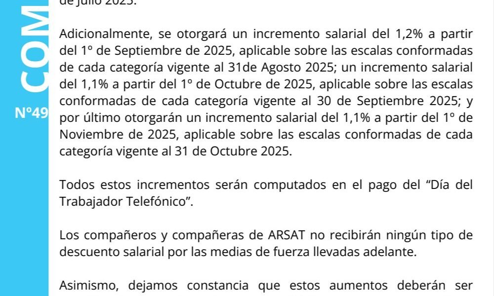 Comunicado de Consitel sobre el acuerdo paritario con ARSAT.