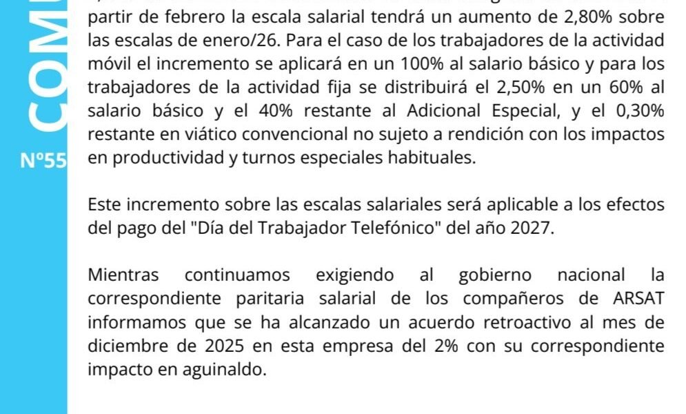 Comunicado de Consitel sobre el acuerdo salarial para el mes de Enero de 2026.