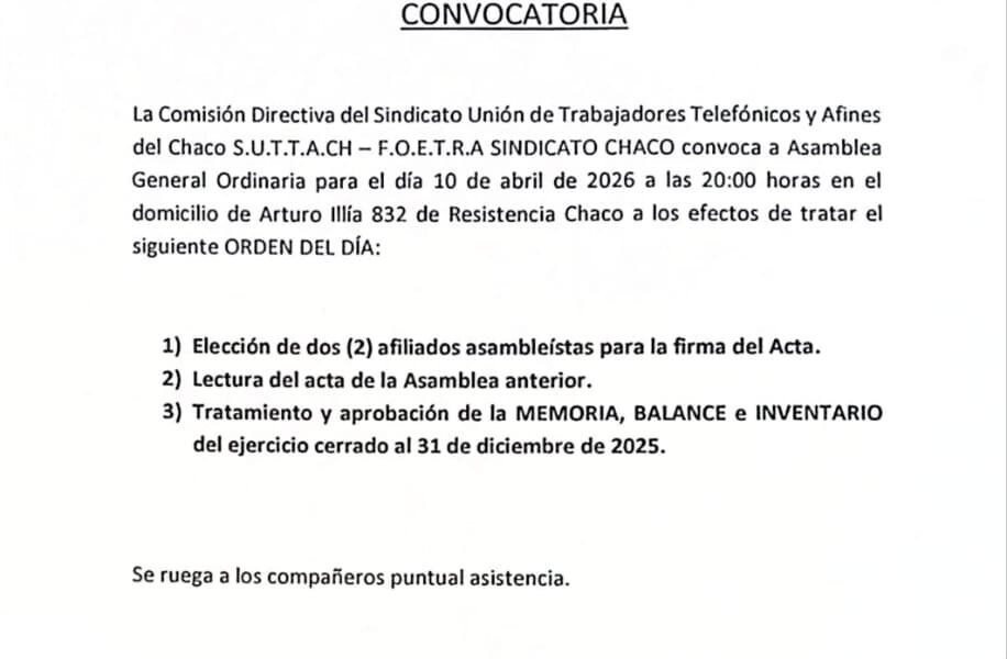 El día Viernes 10 de Abril de 2026 a las 20 hs. se desarrollará la Asamblea General Ordinaria.