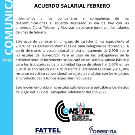 Comunicado de Consitel sobre el acuerdo salarial para el mes de Febrero de 2026.